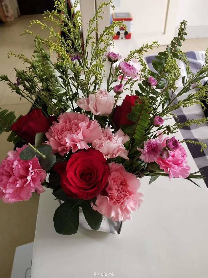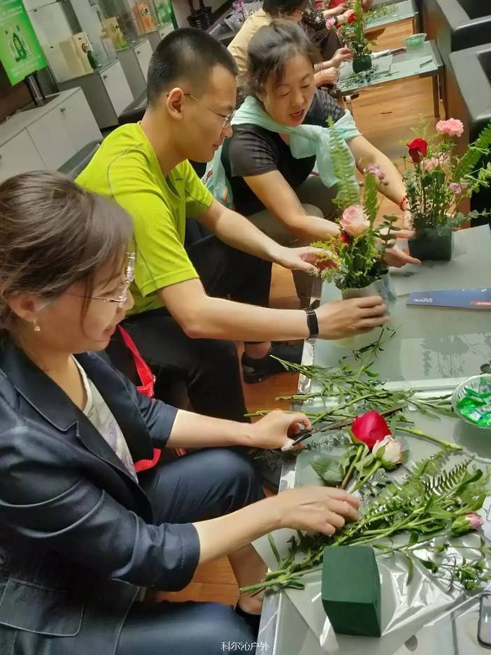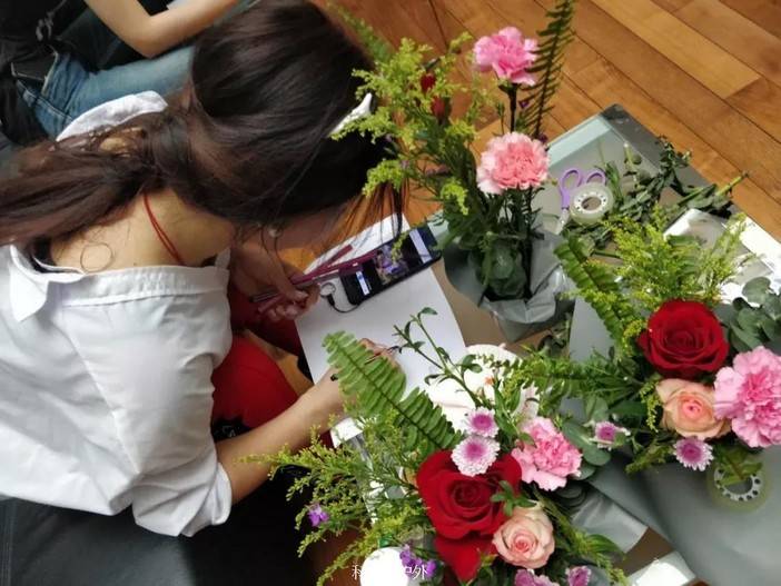 孩子们纷纷和自己的妈妈挑选中意的花朵,完成一个美丽的插花作品,并在这个温暖的节日将花朵转送给妈妈,在繁花似锦前合影留念。